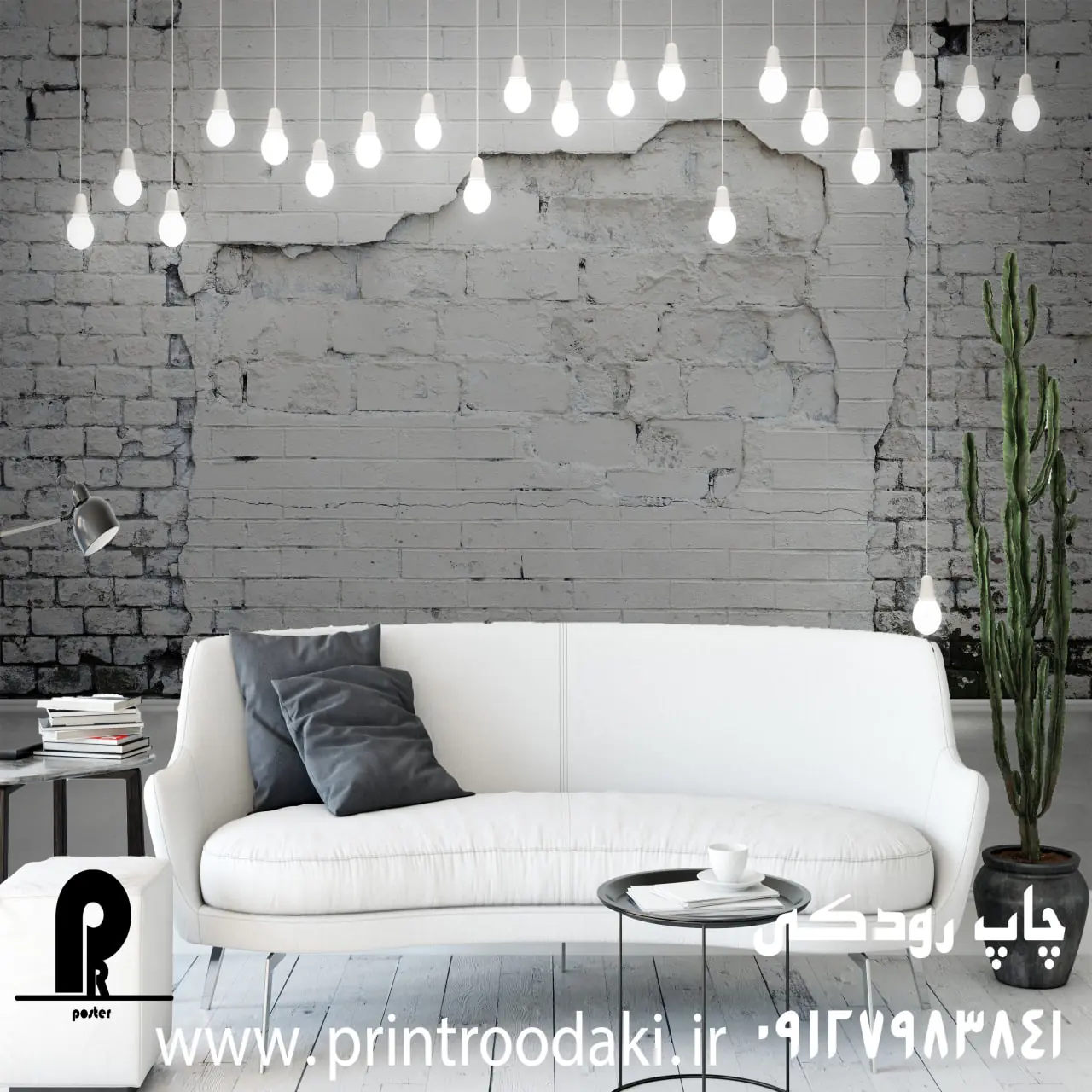 مزایای خرید پوستر دیواری دیوار آجری سفید با لامپ از پرینت رودکی