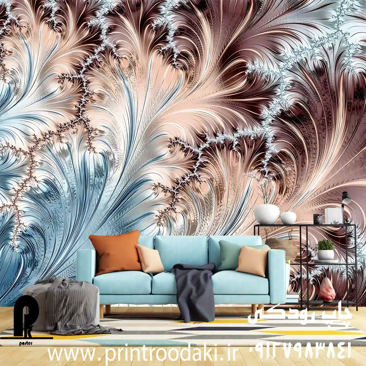 تصور کنید دیوار اصلی خانه یا محل کارتان ناگهان به یک اثر هنری پویا و نفسگیر تبدیل شود. پوستر دیواری سه بعدی رگه دار پرینت رودکی دقیقاً همین کار را انجام میدهد. رگههای مواج فلزی در رنگهای گرم مس و رزگلد، سرد آبی یخی و نقرهای درخشان، همراه با عمق کریستالی و بافت مایعمانند، حس حرکت مداوم و انرژی بیپایان را به فضا تزریق میکند.