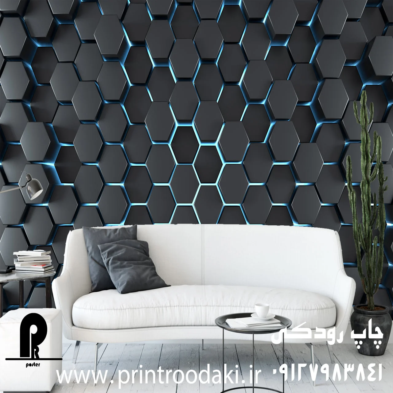 پوستر دیواری سه بعدی شش ضلعی – تحول مدرن در دکوراسیون داخلی با پرینت رودکی