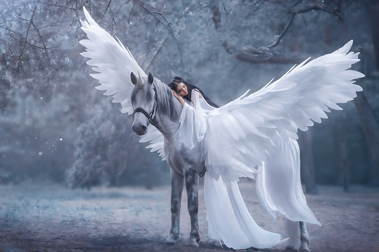 پوستر دیواری فرشته سوار بر اسب | چاپ رودکی – نماد قدرت، امید و پرواز روح