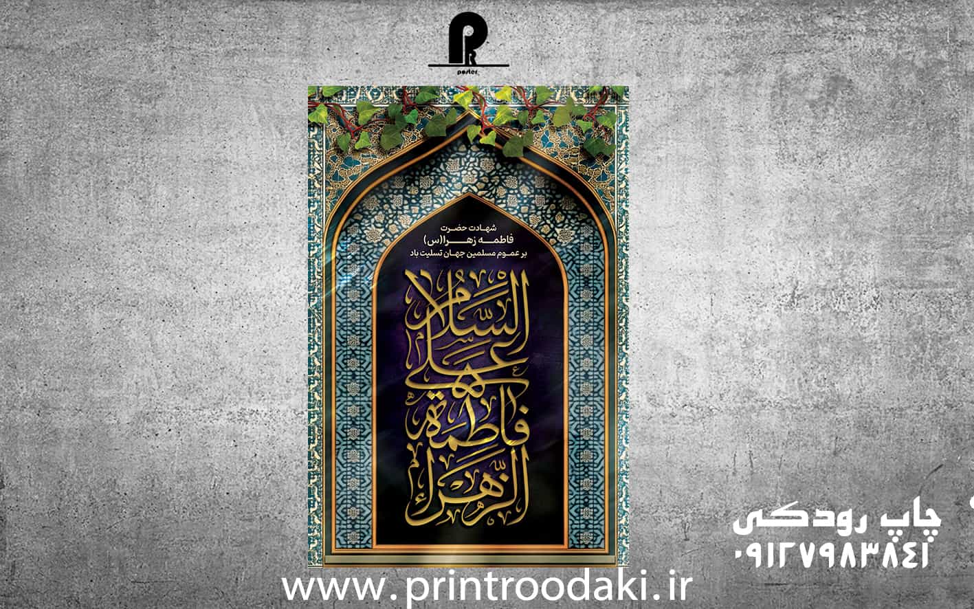 طرح بنر شهادت حضرت فاطمه بهصورت اختصاصی برای پرینت رودکی طراحی شده.