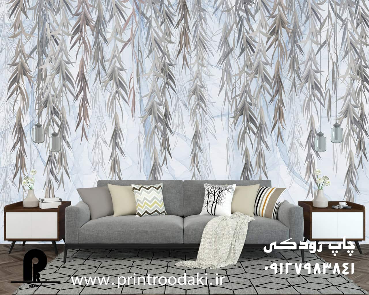 این طرح فوقالعاده محبوب سال ۱۴۰۴ با برگهای آویزان درخت بید در رنگهای خاکستری-بژ و پسزمینه آبی یخی ملایم.